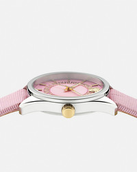 DETAILS Item: - Case: Stainless steel case - Dial: Pink dial with Greca on the inner dial / Medusa at 12h / Versace logo at 6h - Bracelet: Pink grosgrain on calf leather strap with tongue buckle - Movement: RONDA 763 Swiss Quartz 3-hands movement - Water Resistant: 5 ATM Item: PVE8A001-P0024_RTU_TU_PNUL__ SIZE & FIT - Case: 1.4" / 36 mm