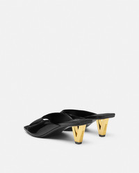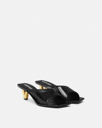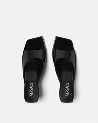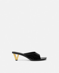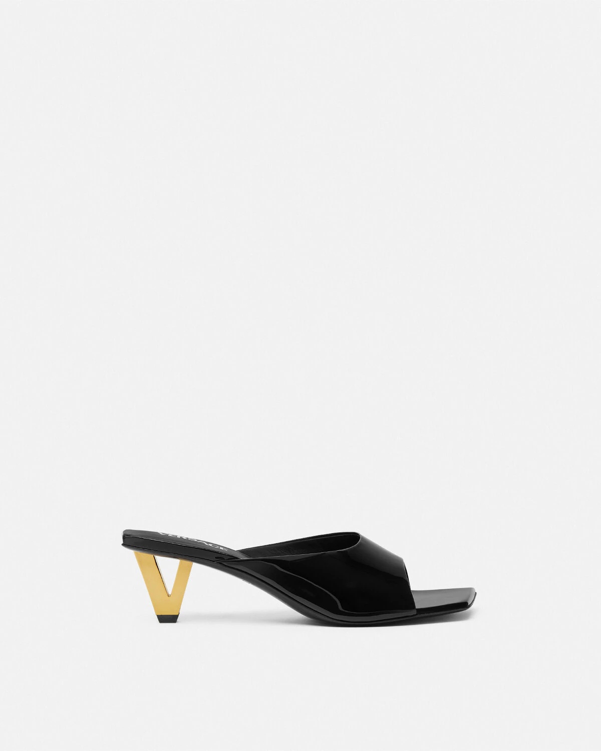 DETAILS These squaretoe patent leather mules feature distinctive Vshaped heelsa bold graphic reinterpretation of the Versace logo - V hardware - Open toe - Square toe - Outer composition: 100% Calf leather - Lining 1: 100% Lambskin - Lining 2: 100% Goat leather - Sole: 100% Calf leather Item: 1017933-D2VE_1B00V SIZE & FIT - The shoe weighs approximately 10.6 oz / 0.3 kg for the shoe size 39 IT - Heel: 2.2" / 5.5 cm