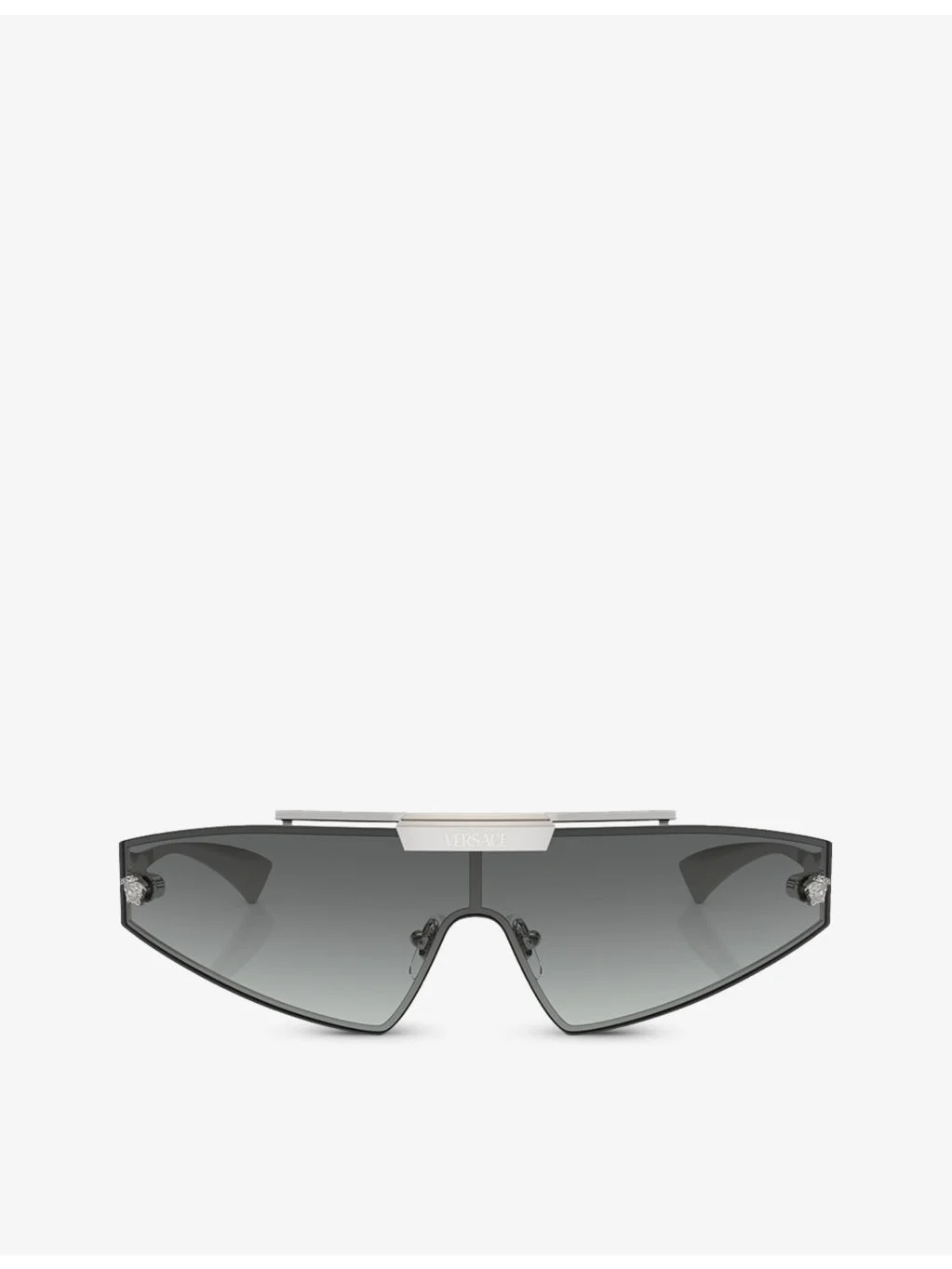 PRODUCT DETAILS - Versace acetate sunglasses - Style number: VE2265 - 100% acetate - 100% UV protection, frameless, high shine tinted lenses, branding at front and sides - Frame shape: irregular - Lens width 14.4cm, temple length 12cm - Wipe with a clean, dry cloth - Comes with a hard case and cloth