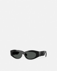 DETAILS An addition to the Medusa Biggie line, these cat-eye oval sunglasses with an injected construction feature the iconic tonal, matte-finished Medusa Biggie embellishment at the wide temples. - Medusa Biggie hardware - Frame color: Black - Temple color: Black - Lens color: Dark gray - Frame: Injected - Temple: Injected Item: O4480U-O53608751_RTU_TU_ONUL__ SIZE & FIT - Lens: W2 x H1.3" / W51 x H32.9 mm - Bridge: 0.7" / 18 mm - Temple: 5.5" / 140 mm