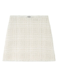 A-line frayed mini skirt Highlights - White - Textured weave - Frayed hem - Concealed zip fastening Made in Italy Composition Outer: Cotton 81%, Viscose 10%, Bamboo Viscose 8%, Metallized Polyester 1% Lining: Cupro 100% Washing instructions Read Manufacturer Guidelines