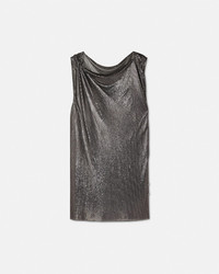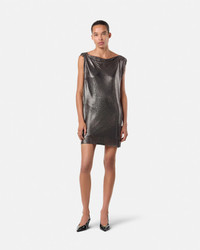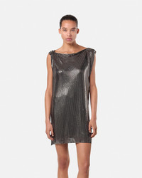 A sleeveless mini dress crafted entirely from the House's Atelier metal mesh featuring a signature Safety Pin at the shoulder, Medusa snap buttons and a slip lining underneath. - Safety Pin hardware - Medusa hardware - Sleeveless - Straight neckline - Side snap button closure - Concealed side zip closure - Outer Composition: 100% Metal - Lining: 75% Acetate, 25% Silk - Material made from responsibly-sourced acetate Size & Fit - The model is 5'10" / 1.78 m tall and wears size 38 IT Item: 1022116-1A16382_1EG80