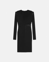 This draped long-sleeved mini dress in crepe stretch jersey features sharp padded shoulders, quilted leather inserts and a plunging neckline. - Long sleeves - V-neckline - Front button closure - Concealed back zip closure - Outer Composition: 95% Viscose, 5% Elastane - Inner Composition: 72% Polyester, 28% Silk - Lining 1: 95% Viscose, 5% Elastane - Lining 2: 84% Polyamide, 16% Elastane - Lining 3: 75% Lambskin, 25% Silk - Trim: 100% Lambskin Item: 1021623-1A14475_1B000