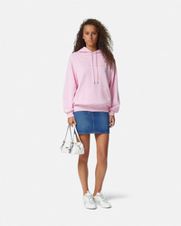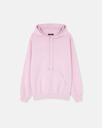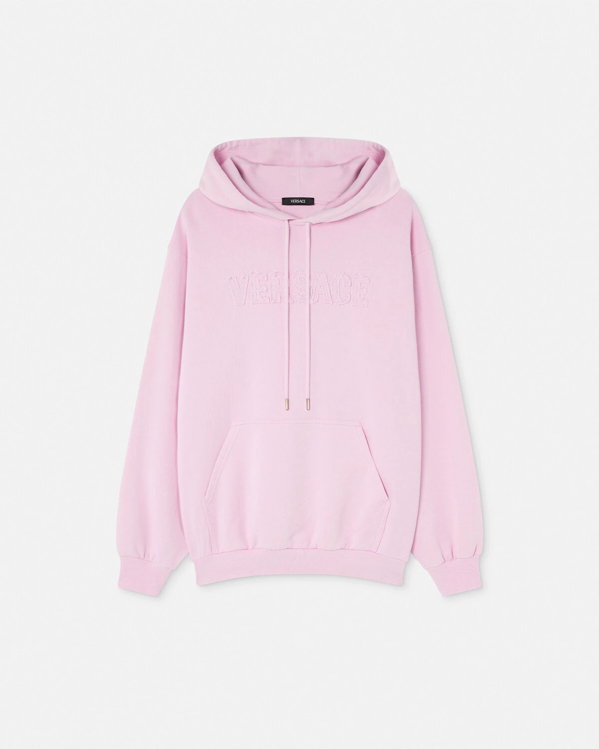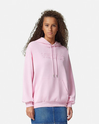 DETAILS This regularfit cottonjersey hooded sweatshirt features a fringed Versace logo embroidery at the front - Versace logo embroidery - Long sleeves - Drawstring hood - Kangaroo pocket - Elastic waistband and cuffs - Outer composition: 100% Cotton - Embroidery: 100% Polyester - Trim: 100% Cotton Item: 1018982-1A13617_1PS10 SIZE & FIT - The model is 5'10" / 1.79 m tall and wears size 38 IT