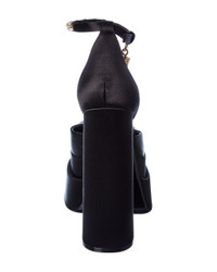 - About the brand: More is more. Bold, sexy & glamorous style from Italy. - Please note: Size selections are European. For US conversions, please reference size chart. - Made in Italy - Medusa Satin Platform Pump in black satin and gold-tone hardware with embellished ankle strap with Medusa head logo charm - Adjustable ankle strap with buckle closure - Lightly padded leather insole - Smooth leather sole - 6in heel - 2.5in platform - Please note: All measurements are approximate and were taken from a size 37; slight variations may occur. - Our products are 100% genuine. In some cases we purchase merchandise from trusted independent suppliers and not directly from the brand owner. In all cases we stand by the authenticity of every product sold on our site.