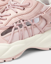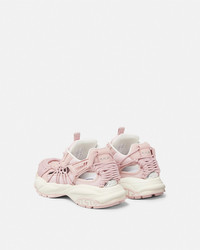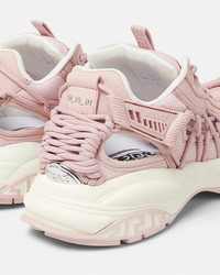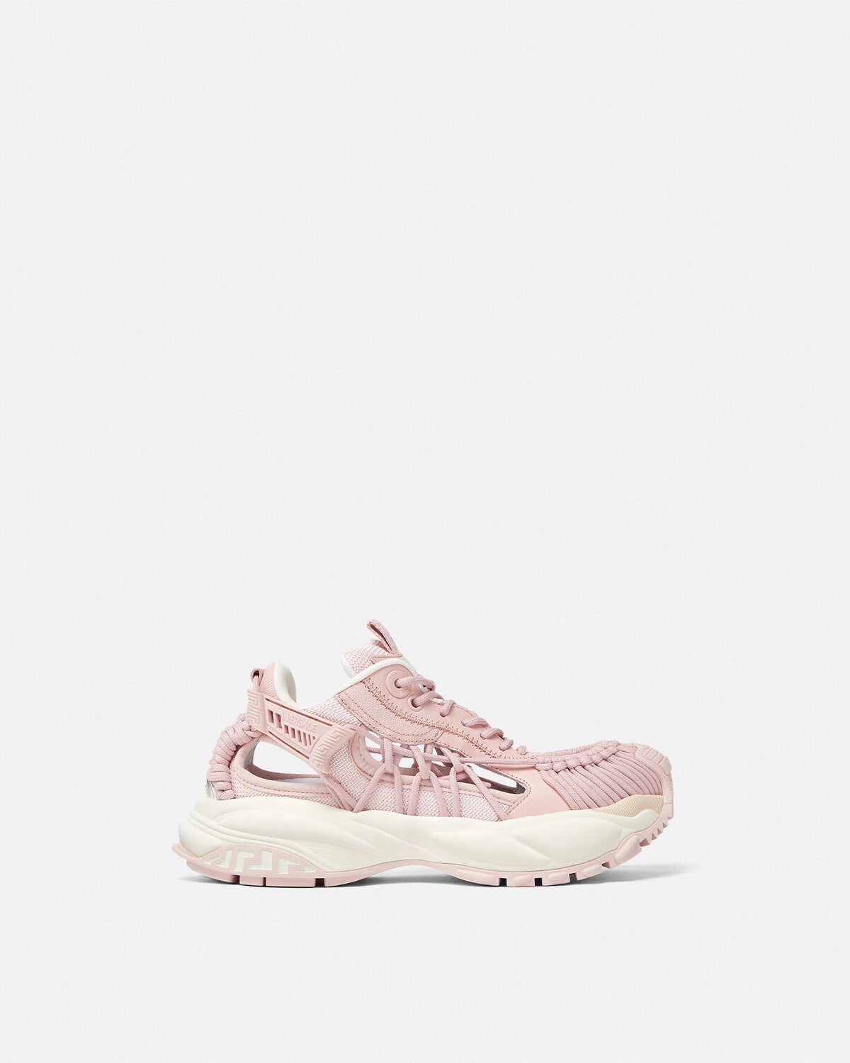 DETAILS A futuristic design fusing the codes of the House with intricate craftsmanship Versace Mercury MVS01 is set on lightweight shockabsorber Greca rubber and EVA soles Cutout mesh uppers are distinguished by a handknotted rope construction The footbed features dynamic screenprinted Mercury lettering and the tongue is detailed by a foil Versace logo and a jacquard Greca ribbon pull tab - Versace logo on tongue - M_VS_01 style code on heel counter - Versace logo engraved on side rubber loop - Greca pull tab - Low top - Lace-up - Cutout - High rebound performance - Outer composition 1: 53% Nylon, 47% Polyester - Outer composition 2: 100% Calf leather - Lining: 100% Calf leather - Sole: 100% Rubber - Outsole featuring 20% pre-consumer recycled rubber Item: 1016874-1A11861_1PT20 SIZE & FIT - The shoe weighs approximately 17.6 oz / 0.5 kg for the model size 37 IT - Footbed: comfortable - Fits true to size, take your normal size