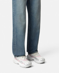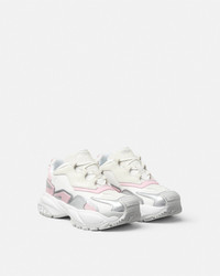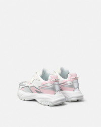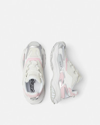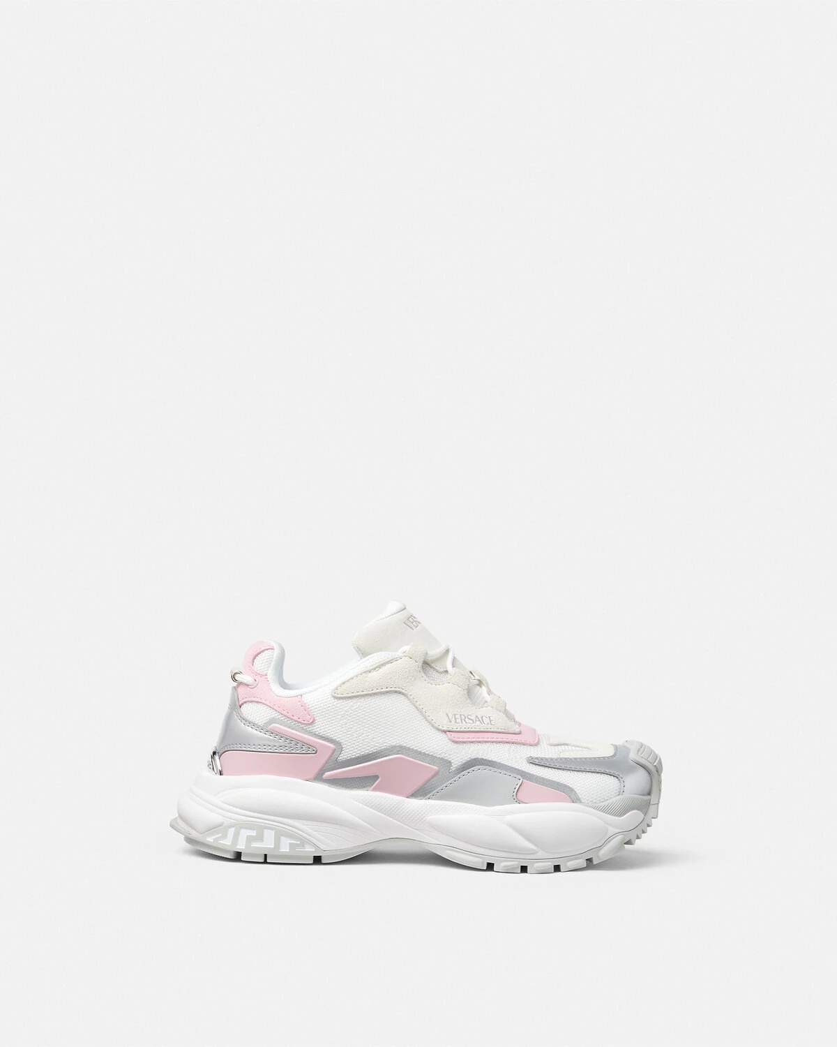DETAILS An extension to the futuristic design of the Versace Mercury line fusing the codes of the House with intricate craftsmanship Versace Mercury MVS04 is set on lightweight shockabsorber Greca rubber and EVA soles and features mesh uppers with suede and metallic inserts Screenprinted Mercury lettering is featured at the footbed and the Versace Logo lettering details the sides and a metallicfinished plaque at the heel counter - Versace Logo on tongue - M_VS_04 style code on heel counter - Versace Logo engraved on back metal loop - Low top - Lace-up - Round toe - High rebound performance - Lining 1: 100% Nylon - Lining 2: 100% Calf leather - Trim 1: 100% Polyester - Trim 2: Calf leather - Sole: 100% Rubber Item: 1016318-1A14022_6WF60 SIZE & FIT - The shoe weighs approximately 17.7 oz / 0.5 kg for the model size 39 IT - Footbed: comfortable - Fits true to size, take your normal size
