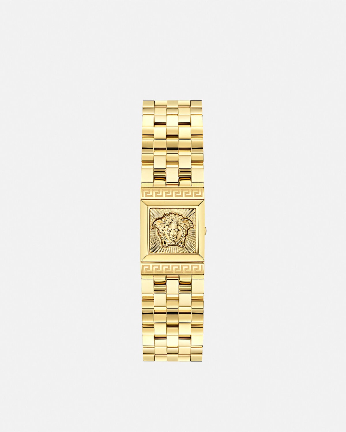 DETAILS The Versace Reveal watch features a squared dial with the Versace Logo at 12 oclock concealed by a threedimensional Medusa closure The unique design is completed by an intricate mosaic bracelet and an engraved Greca motif on the case All Versace watches are guaranteed by the Swiss Made marking All stainless steel is recycled - Case: IP2N squared case - Dial: Black secret dial with Versace Logo at 12h / Medusa on closure - Bracelet: IP2N jewelry bracelet with butterfly buckle - Movement: RONDA 1032 Swiss Quartz 2 hands movement - Water Resistant: 3 ATM Item: PVE0C003-P0025_PNUL SIZE & FIT - Case: 1-0.7" / 25-18 mm