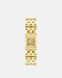 DETAILS The Versace Reveal watch features a squared dial with the Versace Logo at 12 oclock concealed by a threedimensional Medusa closure The unique design is completed by an intricate mosaic bracelet and an engraved Greca motif on the case All Versace watches are guaranteed by the Swiss Made marking All stainless steel is recycled - Case: IP2N squared case - Dial: IP2N secret dial with Versace Logo at 12h / Medusa on closure - Bracelet: IP2N jewelry bracelet with butterfly buckle - Movement: RONDA 1032 Swiss Quartz 2 hands movement - Water Resistant: 3 ATM Item: PVE0C002-P0025_PNUL SIZE & FIT - Case: 1-0.7" / 25-18 mm