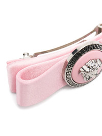rose pink satin weave Medusa plaque detail bow detailing clip fastening silver-tone hardware - length: 9.0 centimetres, width: 1.0 centimetres - Color: PINK - Made in: Italy - Designer Style ID: 1A10854 1012256 1PS1P Composition and care Silk: 28.0%, Viscose: 72.0%