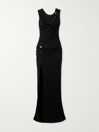 Embellished draped stretch-jersey gown Black