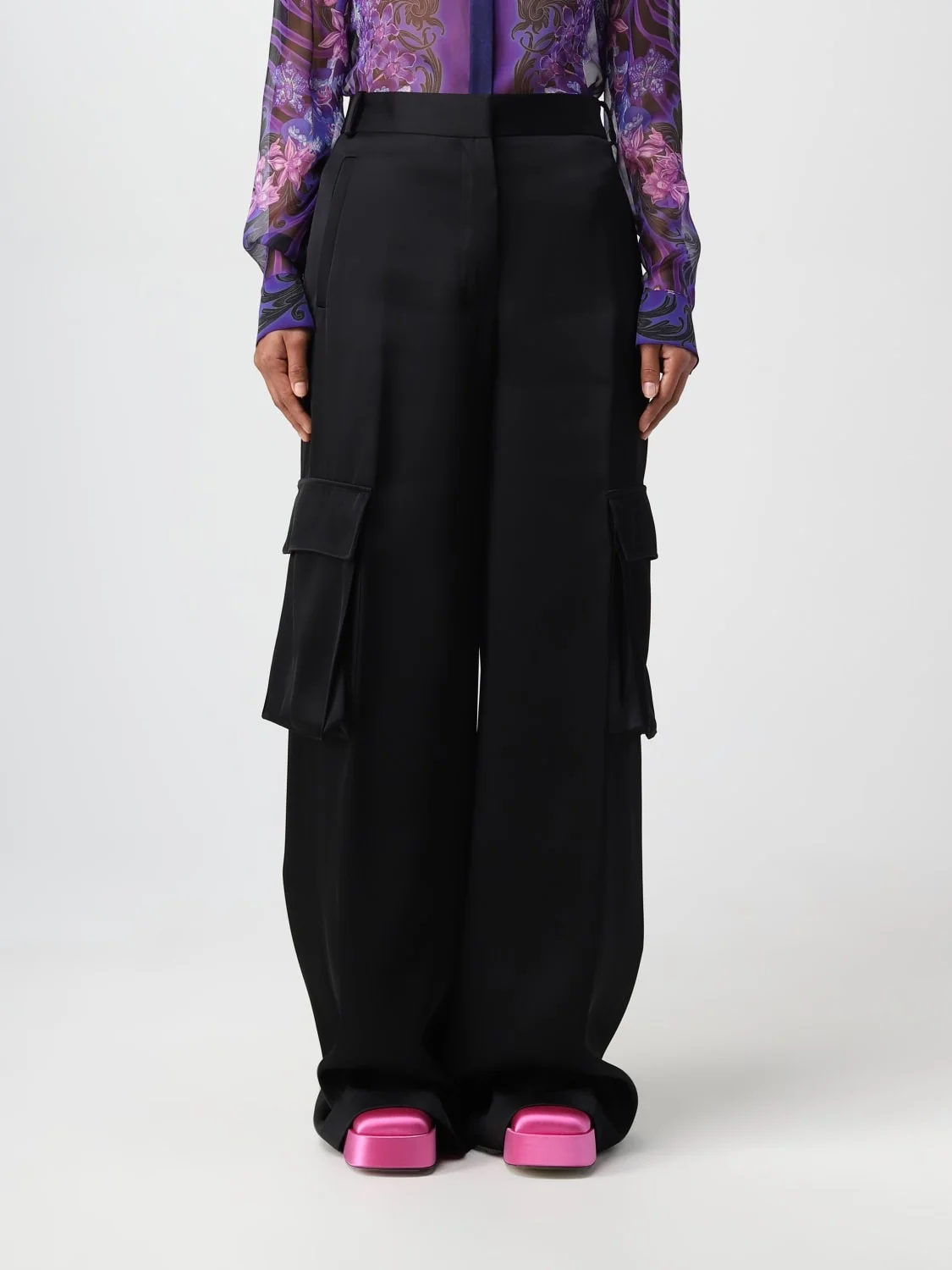 DESCRIPTION - Style: Casual, Urban-street - Model: Cargo - Pockets: America , Back slit pocket, Cargo - Waist: 미디엄 웨이스트 - Bottom: With straight hemline - Closure: With button and zip - Materials: Satin - Pattern: Plain-colored DETAILS AND CARE Composition 100% viscosa SIZE AND FIT Sizes not available Size and fit Regular fit Designer code: 10098441A06838 1B000 Giglio Code: E22700 Designer: Versace Collection: Versace Woman Category: Clothing Versace