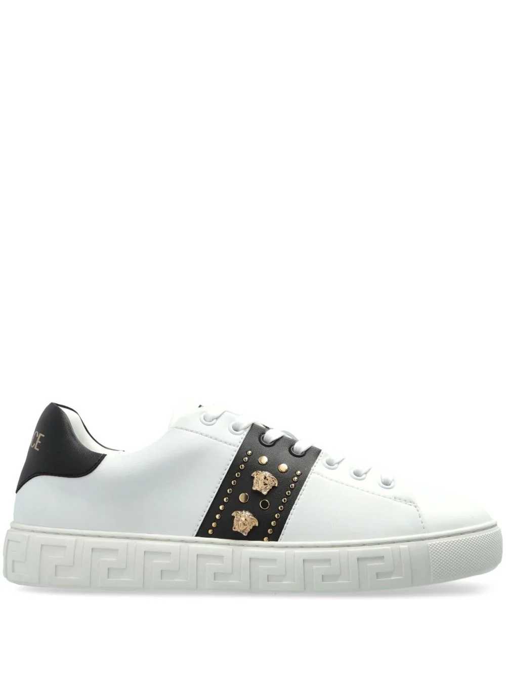 Greca sneakers Highlights - White - Front lace-up fastening - Medusa plaque detail - Stud embellishment - Contrasting branded heel counter Made in Italy Composition Leather 100%