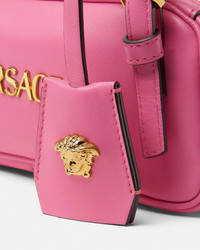 The Versace Tag bowling mini bag is crafted from ultra-soft nappa leather. The accessory is accented by metal Versace lettering and can be carried in-hand or worn crossbody by the adjustable shoulder stap. A removable leather tag keychain with Medusa hardware completes the design. - Medusa hardware - Versace Logo lettering - Top zip closure - Adjustable top handles - Adjustable shoulder strap - Removable keychain tag - Outer composition: 100% Lambskin - Lining: 100% Polyester Size & Fit - L7.5 x W3.3 x H3.3" / L19 x W8.5 x H8.5 cm - Handle drop: L5.1" / L13 cm - Shoulder strap: L43.3-45.3-47.2" / L110-115-120 cm - Shoulder strap drop: L20.7-21.8-22.6" / L52.5-55-57.5 cm - Approximate weight: 7.1 oz / 0.2 kg Item: 1019178-1A13171_DTU_UNICA_1PV9V__