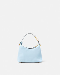 The Versace Tag hobo bag is crafted from ultra-soft nappa leather. The versatile accessory is accented by metal Versace lettering and can easily be carried in-hand by the top handle or crossbody by the detachable and adjustable leather strap. A removable leather tag keychain with Medusa hardware completes the design. - Medusa hardware - Versace Logo lettering - Top zip closure - Top handle - Adjustable and detachable shoulder strap - Removable keychain tag - Outer composition: 100% Lambskin - Lining: 100% Polyester Size & Fit - L9" x W6.3" x H4.3" / L23 x W16 x H11 cm - Handle drop:L4.7" / L12 cm - Shoulder strap: L49.2" / L125 cm - Shoulder strap drop: L17.3"-19.7"-22" / L44-50-56 cm - Approximate weight: 10.5 oz / 0.3 kg Item: 1018302-1A13171_DTU_UNICA_1VD6V__