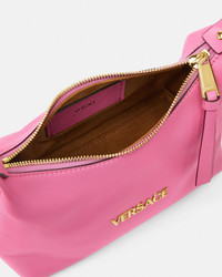 The Versace Tag hobo bag is crafted from ultra-soft nappa leather. The versatile accessory is accented by metal Versace lettering and can easily be carried in-hand by the top handle or crossbody by the detachable and adjustable leather strap. A removable leather tag keychain with Medusa hardware completes the design. - Medusa hardware - Versace Logo lettering - Top zip closure - Top handle - Adjustable and detachable shoulder strap - Removable keychain tag - Outer composition: 100% Lambskin - Lining: 100% Polyester Size & Fit - L9" x W6.3" x H4.3" / L23 x W16 x H11 cm - Handle drop:L4.7" / L12 cm - Shoulder strap: L49.2" / L125 cm - Shoulder strap drop: L17.3"-19.7"-22" / L44-50-56 cm - Approximate weight: 10.5 oz / 0.3 kg Item: 1018302-1A13171_DTU_UNICA_1PV9V__