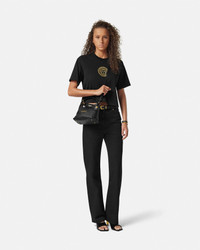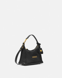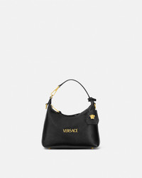 The Versace Tag hobo bag is crafted from ultra-soft nappa leather. The versatile accessory is accented by metal Versace lettering and can easily be carried in-hand by the top handle or crossbody by the detachable and adjustable leather strap. A removable leather tag keychain with Medusa hardware completes the design. - Medusa hardware - Versace Logo lettering - Top zip closure - Top handle - Adjustable and detachable shoulder strap - Removable keychain tag - Outer composition: 100% Lambskin - Lining: 100% Polyester Size & Fit - L9" x W6.3" x H4.3" / L23 x W16 x H11 cm - Handle drop:L4.7" / L12 cm - Shoulder strap: L49.2" / L125 cm - Shoulder strap drop: L17.3"-19.7"-22" / L44-50-56 cm - Approximate weight: 10.5 oz / 0.3 kg Item: 1018302-1A13171_DTU_UNICA_1B00V__