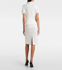 Embrace timeless glamour with this design from Versace. This midi skirt is crafted in Italy from virgin wool and features zipped closure at the back. Product Details - Material: 100% virgin wool - Care instructions: dry clean - Made in Italy - Designer color name: White - Item color: white - Lining: 100% cupro - Closure: concealed zipped back - Short vent - Item number: P01129279 Size & Fit - True to size - Non-stretchy fabric - Sits low on the hips - Height of model is 178cm-70" and wears a size IT 40