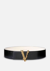 The House's iconic Virtus hardware in gleaming gold-tone adorns the buckle of this leather belt. DETAILS & CARE - Barocco V buckle - Outside: 100% Leather - Made in Italy