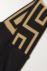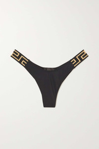 EDITORS'NOTES You don't have to stay at one of Versace's 'Palazzo Versace' resorts, but the house's swimwear deserves an opulent backdrop. Made from stretch fabric, these bikini briefs have high-cut legs to give the illusion of taller proportions. You'll recognize the 'Greca' motif jacquard-woven along the sides, too. SIZE & FIT - 1 = XS - 2 = S - 3 = M - 4 = L - 5 = XL - Fits true to size, take your normal size - Model is 175cm/ 5'9" and is wearing the designer's size 1 DETAILS & CARE - Black stretch-polyamide, black and gold jacquard - 78% polyamide, 22% elastane - Hand wash - Lotion, sunscreen, oil and chlorine can cause discoloration of this item; this is not a manufacturing defect. Please follow care instructions to keep your swimwear in the best condition