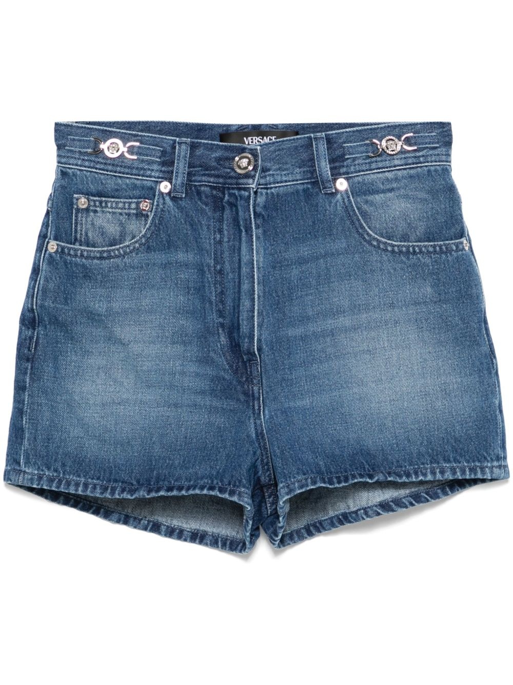denim shorts Highlights - Blue - Front button and zip fastening - Belt loops - Classic five pockets - Medusa head motif Made in Italy Composition Lining: Polyester 65%, Cotton 35% Outer: Cotton 100% SIZE & FIT Model measurements Height 5 ft 10 in(1.77 m) Bust/Chest 29.92 in(76 cm) Hips 33.46 in(85 cm) Waist 23.62 in(60 cm) FittingInformation Designed for a slim fit with a close-fitting internal layer Sturdy and hard-wearing, this denim piece offers no stretch