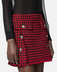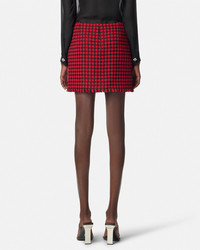 DETAILS A mini pencil skirt crafted from a micro windowpane woolblend checkerboard pattern with handfringed edges Signature Medusa buttons accent the front flap pockets and closure - Medusa hardware - Front flap pockets - Concealed back zip closure - Outer composition: 48% Pure virgin wool, 46% Viscose, 6% Nylon - Lining: 100% Cupro Item: 1017311-1A12270_2RB80