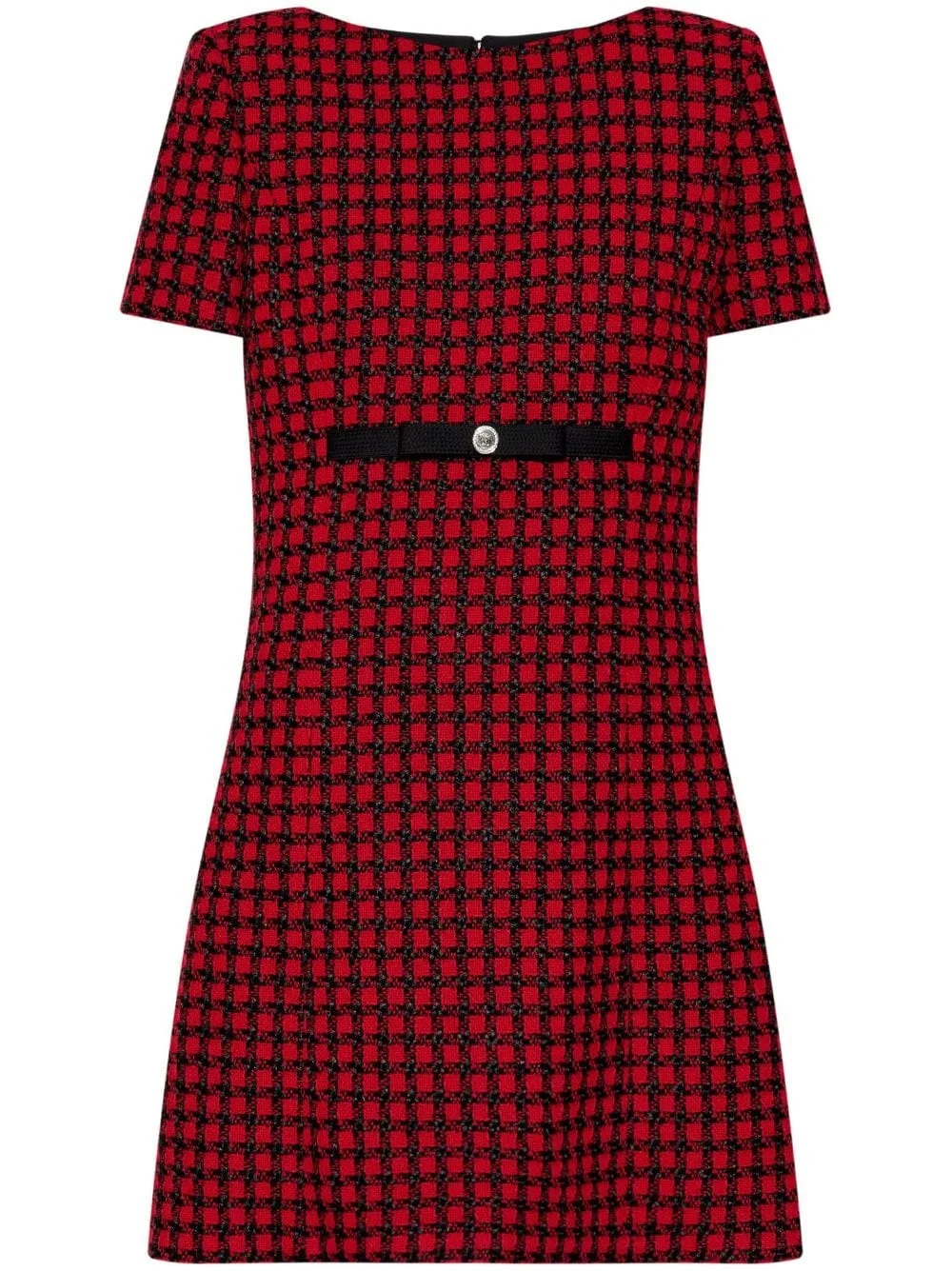 Medusa tweed mini dress Highlights - Black/red - Virgin wool-silk blend - Tweed - Concealed rear zip fastening - Round neck - Short sleeves - Medusa head motif - Thigh-length - Straight hem Made in Italy Composition Outer: Virgin Wool 48%, Viscose 46%, Nylon 6% Lining: Acetate 75%, Silk 25%