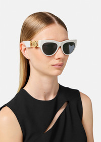 DETAILS A cat-eye shape, these sunglasses feature an acetate frame and are accented with Medusa '95 hardware at the temples - Enamel Medusa hardware - Frame color: White - Temple color: Gold-tone - Lens color: Dark gray - Frame: Nylon - Temple: Metal Item: O4440U-O3148756_RTU_TU_ONUL__ SIZE & FIT - Lens width: 2.2" - Bridge: 0.7" - Temple: 5.7"