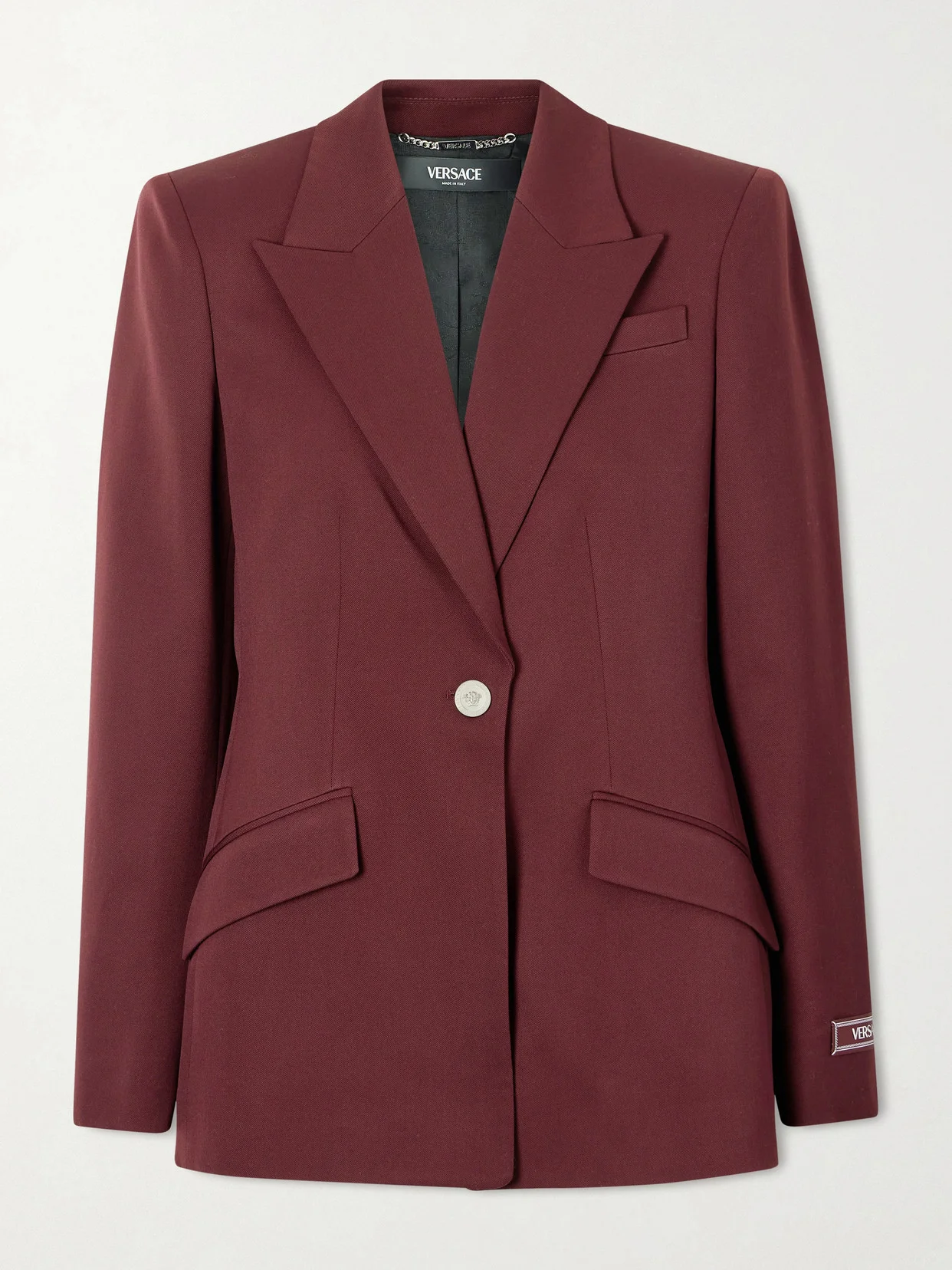 Versace fans will instantly recognize this 'Informal' blazer thanks to the single Medusa medallion. It's tailored from stretch-wool with structured shoulders and peak lapels.