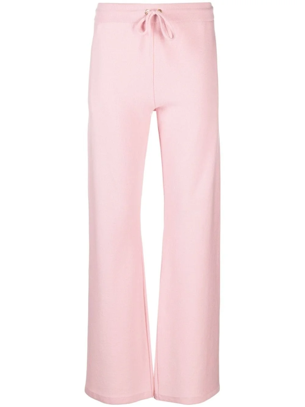 flared towel trousers Offering a minimalist take on loungewear, these pink Versace trousers are knitted from wool and cashmere to a clean-lined, flared silhouette. They feature an elasticated waistband, two side pockets and ribbed trim. Highlights - Flamingo pink - Wool-cashmere blend - Ribbed knit - Logo-engraved gold-tone hardware - Metal eyelet detailing - Elasticated drawstring waistband - Two side inset pockets - Flared Made in Italy Composition Wool 70%, Cashmere 30% SIZE & FIT Model measurements Height 5 ft 9 in(1.76 m) Bust/Chest 31.88 in(81 cm) Hips 35.43 in(90 cm) Waist 24.8 in(63 cm) FittingInformation Designed with a bootcut leg, these trousers allow for a close fit at the waist and with an unrestricted, comfortable fit and additional room at the calves Adjust this piece’s waistband to your preference using the drawstring Made with a midweight knit, this piece offers some stretch This piece fits true to size – take your usual size Washing instructions Dry Clean Only