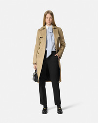 DETAILS These slim tapered pants are made from a stretch, crêpe, double wool blend with accent Medusa hardware at the back welt pockets. - Medusa hardware - Belt loops - Concealed hook and zip closure - Side pockets - Back welt pockets - Outer composition: 97% Pure virgin wool, 2% Nylon, 1% Elastane - Lining: 58% Cupro, 42% Viscose Item: 1013639-1A10943_1B000