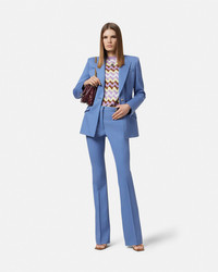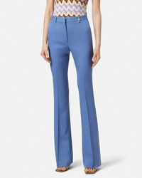 DETAILS Grain de poudre stretchwool pants in the signature slimfit DV silhouette with a flared hem The tailored style is accented by a Medusa 95 hardware on the belt loop - Medusa '95 hardware - Belt loops - Concealed hook and zip closure - Side pockets - Back welt pockets - Outer composition: 98% Pure virgin wool, 2% Elastane - Yarn made from responsibly sourced wool - Lining: 100% Cupro Item: 1013158-1A12595_1VF00 SIZE & FIT - The model is 5'10" / 1.79 m tall and wears size 38 IT