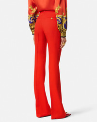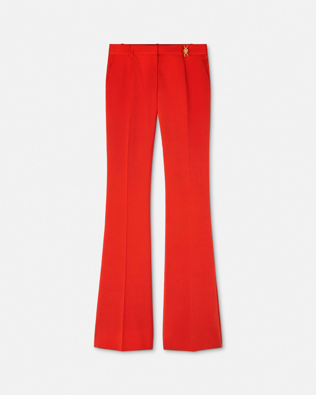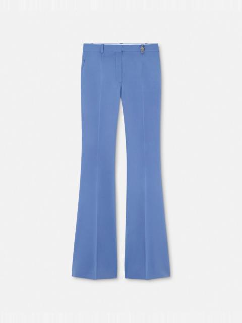 DETAILS Grain de poudre stretchwool pants in the signature slimfit DV silhouette with a flared hem The tailored style is accented by a Medusa 95 hardware on the belt loop - Medusa '95 hardware - Belt loops - Concealed hook and zip closure - Side pockets - Back welt pockets - Outer composition: 98% Pure virgin wool, 2% Elastane - Yarn made from responsibly sourced wool - Lining: 100% Cupro Item: 1013158-1A12595_1RC90 SIZE & FIT - The model is 5'10" / 1.79 m tall and wears size 38 IT