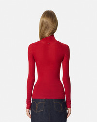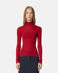 DETAILS A seamless ribbedknit top in merino wool with a mockneck and subtle Medusa stud at the back - Medusa hardware - Long sleeves - Mockneck - Outer composition: 100% Pure virgin wool Item: 1017241-1A11022_1RB30 SIZE & FIT - The model is 5'8" / 1.75 m tall and wears size 38 IT
