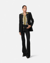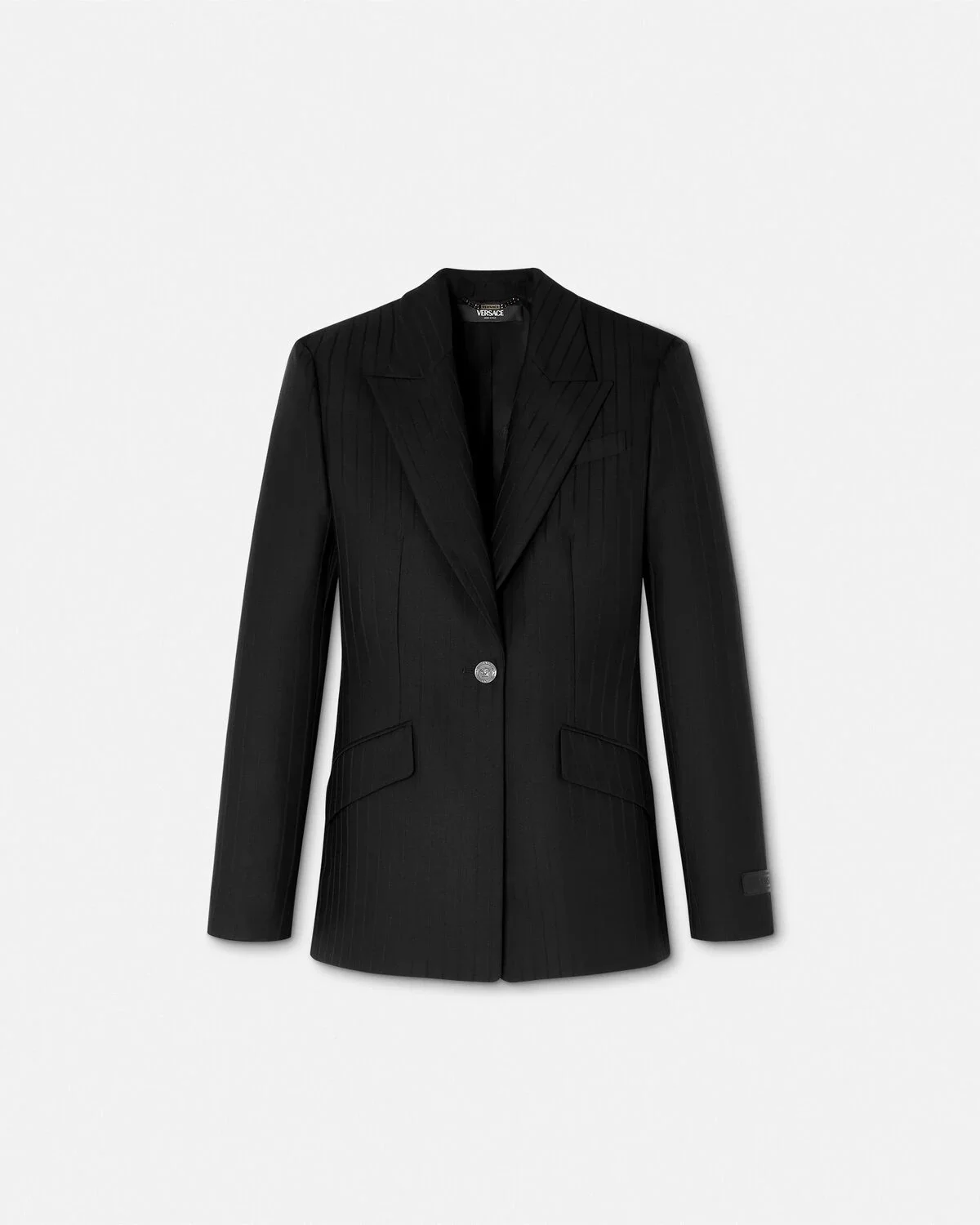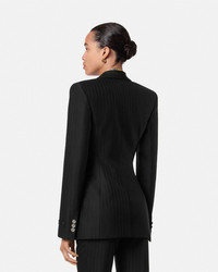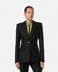 DETAILS This singlebreasted blazer in the signature DV silhouette is crafted from pinstriped wool The fullylined tailored style has accent Medusa buttons and peaked lapels - Medusa hardware - Long sleeves - Peaked lapels - Front button closure - Chest welt pocket - Front flap pockets - Buttoned cuffs - Back vent - Outer Composition: 100% Pure Virgin Wool - Lining: 100% Cupro Item: 1018018-1A16260_1B000 SIZE & FIT - The model is 5'10" / 1.78 m tall and wears size 38 IT