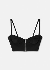 A front zipped bralette top detailed with quilted cups. DETAILS & CARE - Sleeveless - Shoulder straps - Front zip closure - Outer composition: 74% Acetate, 26% Viscose - Lining: 75% Acetate, 25% Silk - Trim: 78% Viscose, 16% Nylon, 6% Elastane - Do not wash - Do not bleach - Do not tumble dry - Cool iron - Delicate dry clean - Protect accessory before washing SIZE & FIT - All sizes fit Italian standards - The model is 6'0" ft tall and wears size 38 IT