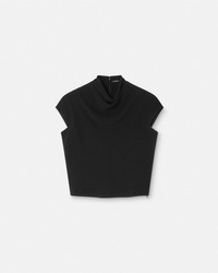DETAILS A fluid cady top with a draped high neckline and a concealed side zip closure for versatile styling - High-neck - Cap sleeves - Concealed zip closures - Outer composition: 78% Viscose, 22% Acetate - Lining: 75% Acetate, 25% Silk Item: 1016956-1A12265_1B000 SIZE & FIT - The model is 5'8" / 1.75 m tall and wears size 38 IT