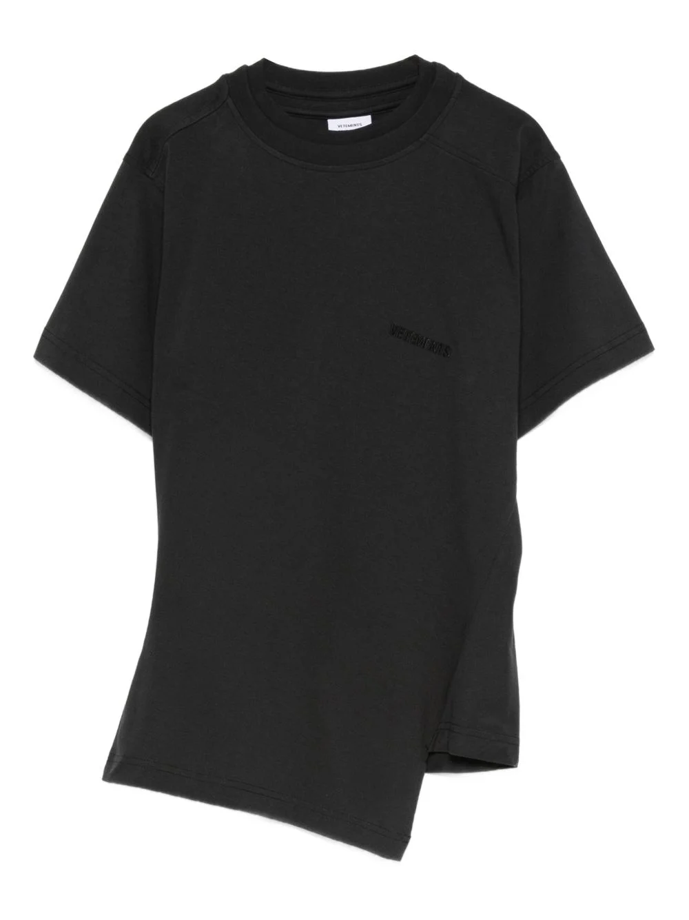 asymmetric T-Shirt Highlights - Black - Asymmetric hem - Short sleeves - Crew neck Imported Composition Cotton 100% SIZE & FIT Model measurements Height 5 ft 10 in(1.79 m) Bust/Chest 30.31 in(77 cm) Hips 34.64 in(88 cm) Waist 23.62 in(60 cm) Washing instructions Machine Wash