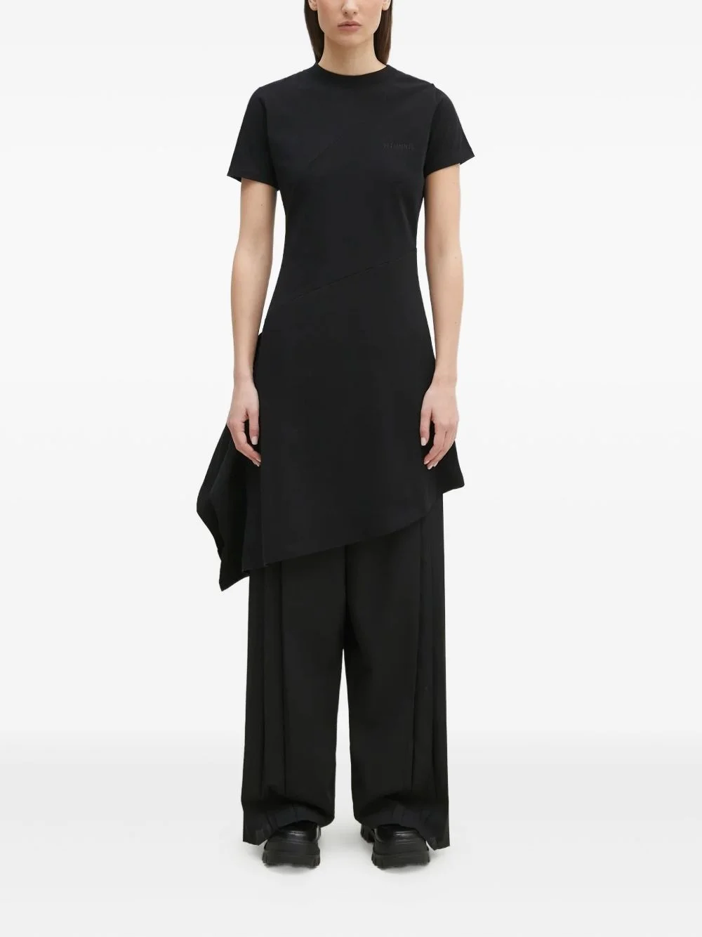 asymmetric pleated dress Highlights - Black - Short sleeves - Asymmetric hem - Pleated detail - Round neck Imported Composition Cotton 93%, Elastane 7% Washing instructions Read Manufacturer Guidelines