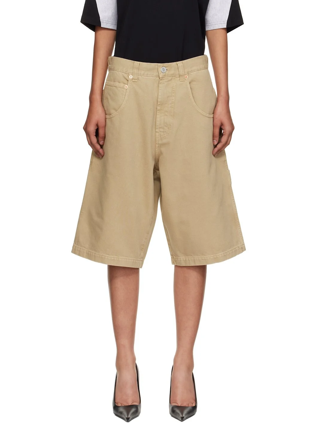 Non-stretch denim shorts. · Belt loops · Five-pocket styling · Zip fly · Hammer loop at outseam · Patch pockets and embroidered logo at back leg · Logo-engraved silver- and copper-tone hardware Supplier color: Camel Body: 100% cotton. Lining: 65% polyester, 35% cotton. Made in Italy 252669F088000