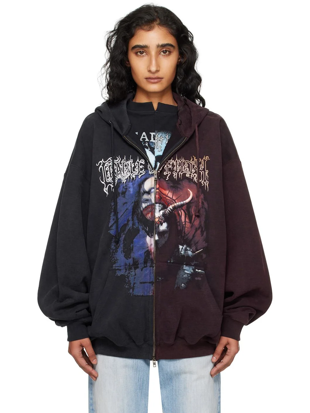 Black & Burgundy Cradle of Filth Cut-Up Oversized Zip-Up Hoodie