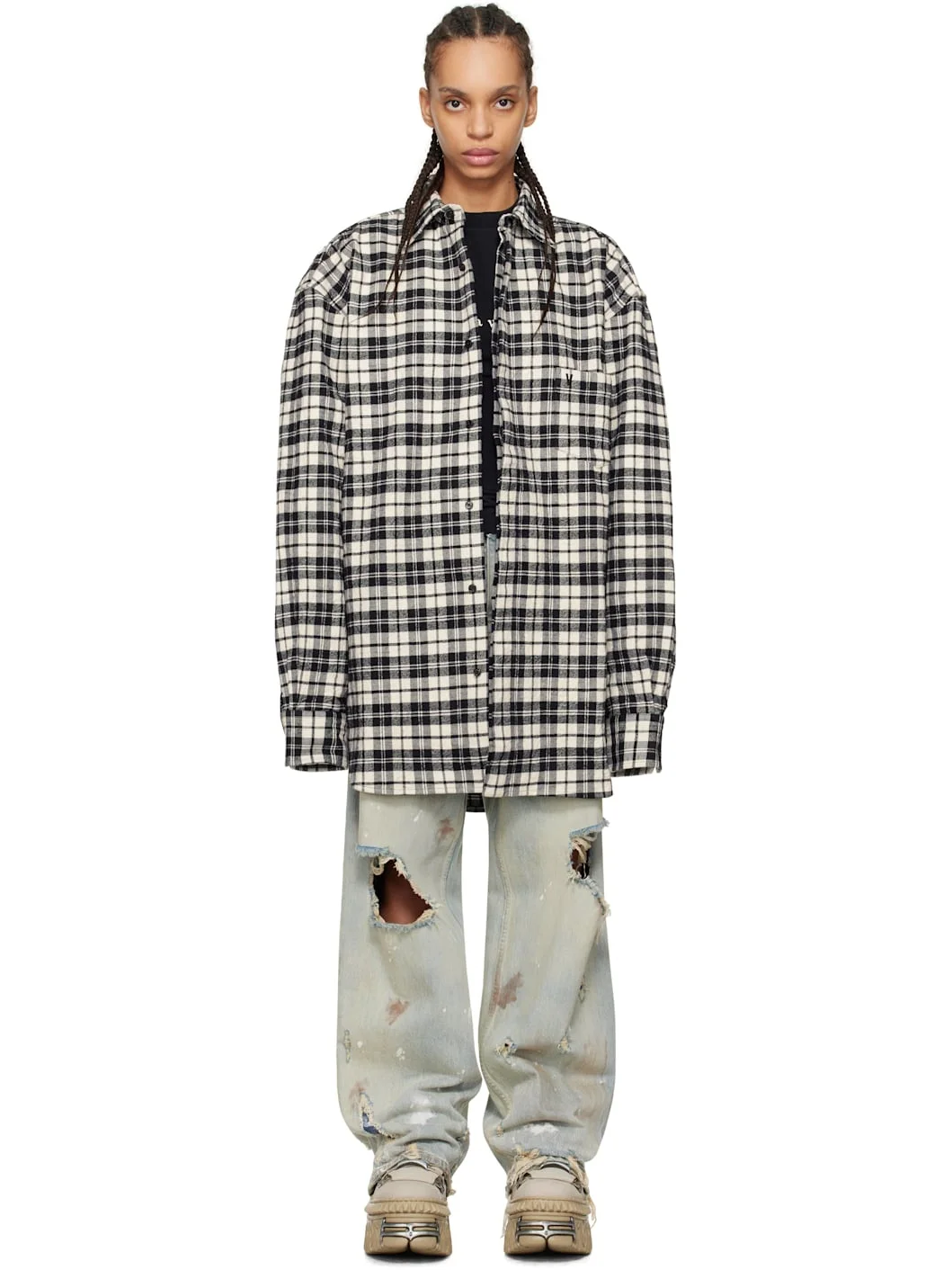 Crinkled cotton flannel shirt. Check pattern throughout. · Spread collar · Concealed button closure · Adjustable buttoned barrel cuffs · Dropped shoulders Supplier color: Black check Body: 100% cotton. Trim: 100% aluminum. Made in Italy 251669F109000