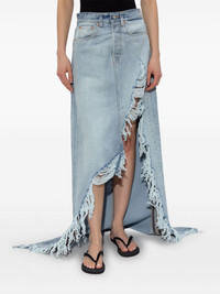 draped denim skirt Highlights - Light blue - Concealed fly and button fastening - Classic five pockets - Fishtail train - Distressed finish Made in Italy Composition Cotton 100%
