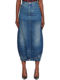 Blue Double Denim Midi Skirt