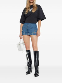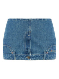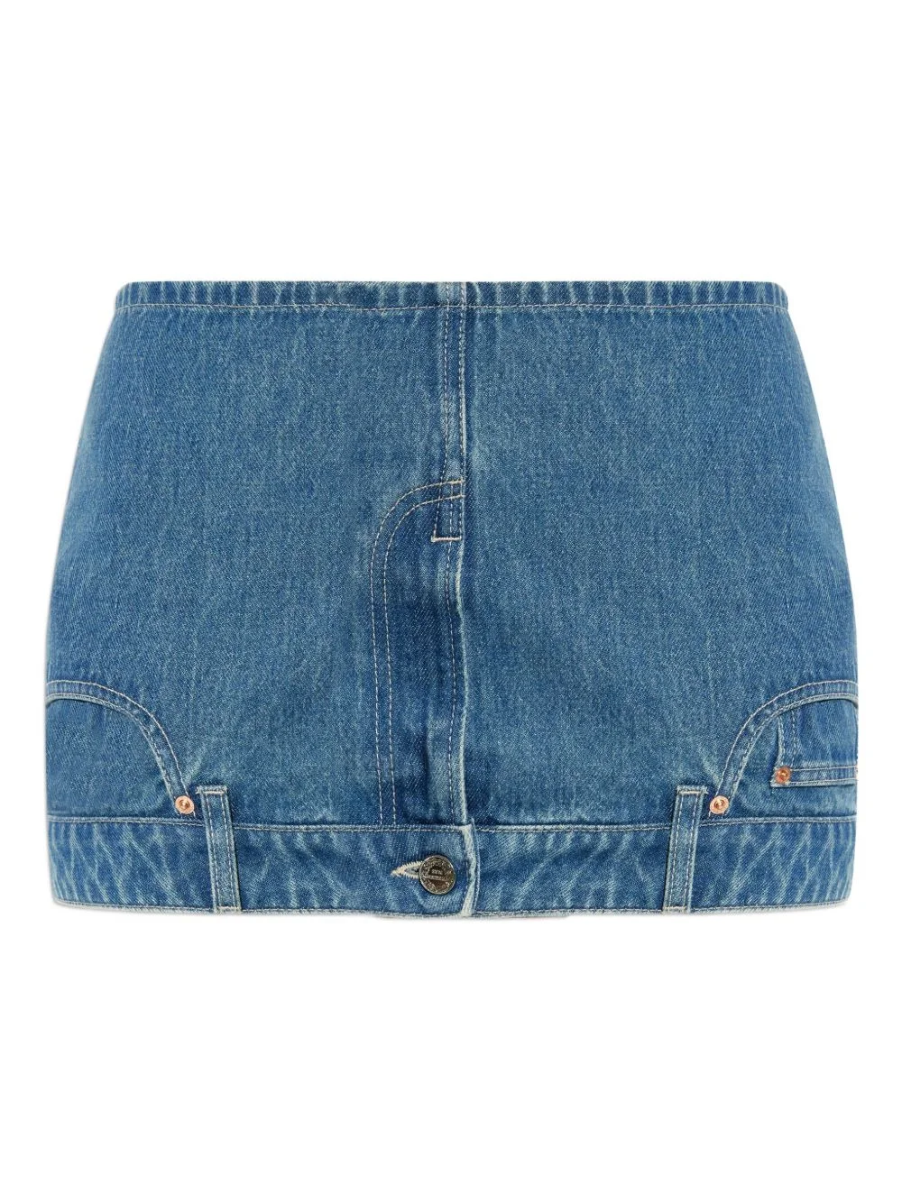 upside-down denim mini skirt Highlights - Blue - Denim texture - Upside-down design - Button fastening - Logo patch label Made in Italy Composition Cotton 100% Washing instructions Read Manufacturer Guidelines