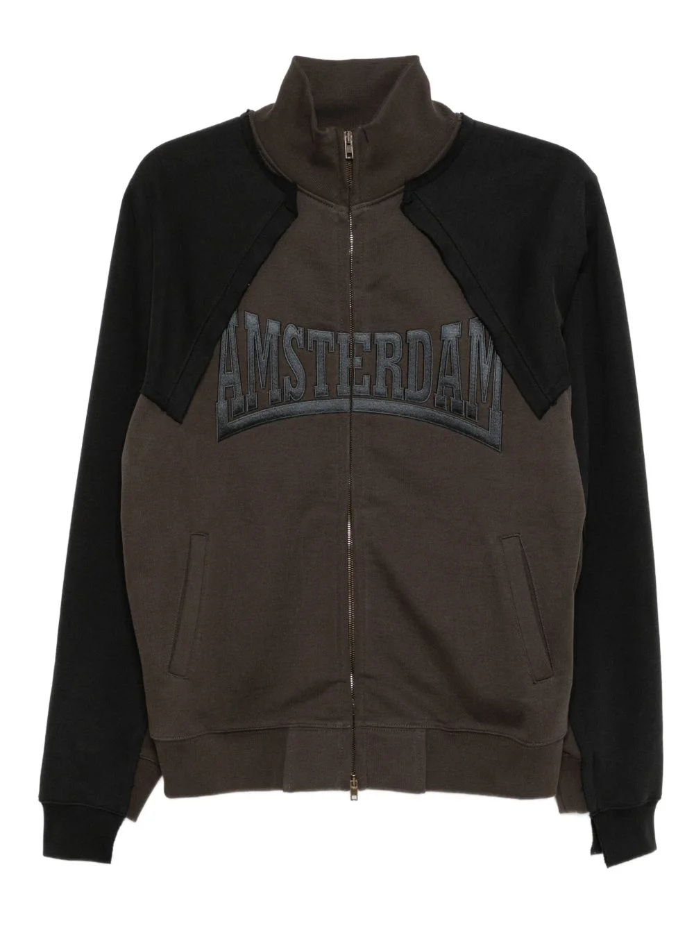 slogan-embroidered jacket Highlights - Cedar brown - Front zip fastening - Two side welt pockets - Long sleeves Imported Composition Cotton 80%, Polyester 20% Washing instructions Machine Wash