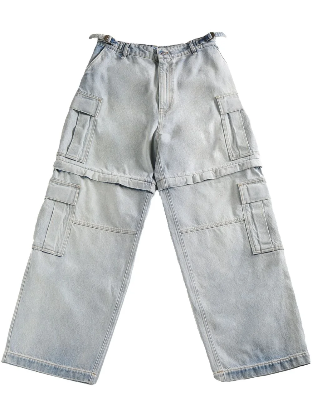 cargo jeans Highlights - Light blue - Concealed fly and button fastening - Two side slash pockets - Multiple cargo pockets - Two rear flap pockets - When buying this unisex item, keep in mind that it is graded in standard men's sizing. Imported Composition Fabric 100%