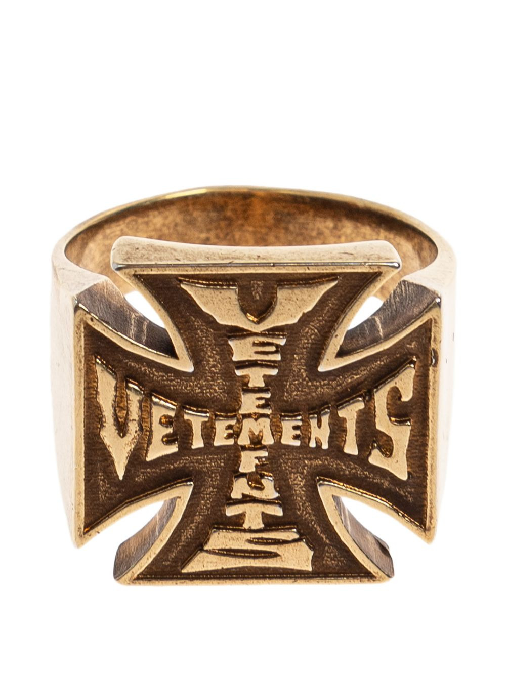 cross ring Highlights - Gold-tone - Cross embellishment - Inscription detail - Wide band Made In Italy