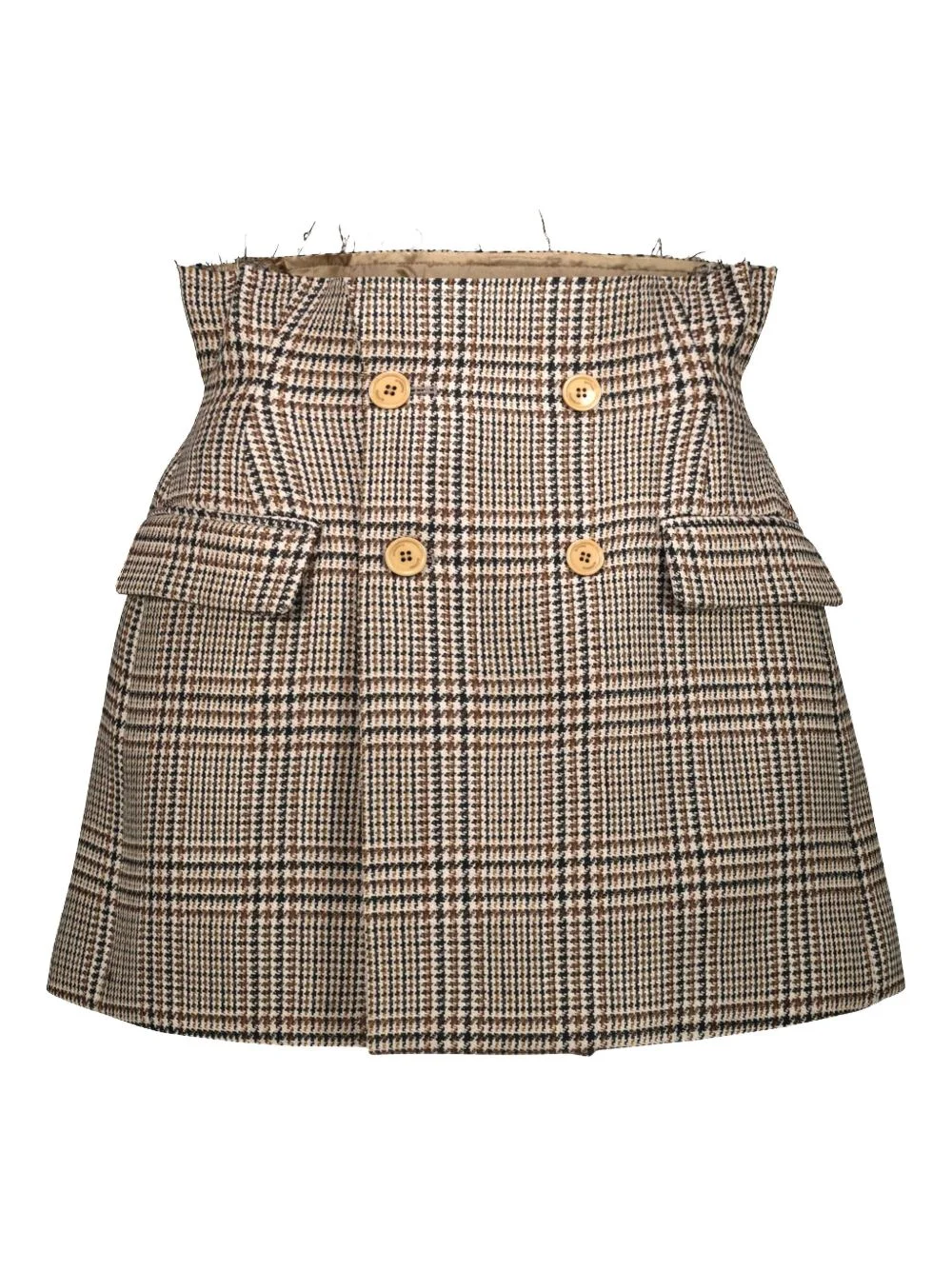 double-breasted houndstooth mini skirt Highlights - Beige - Houndstooth check pattern - Double-breasted closure - Raw cut at the waist - Two side pockets - Rear logo patch Made in Italy Composition Wool 100% Washing instructions Read Manufacturer Guidelines