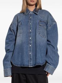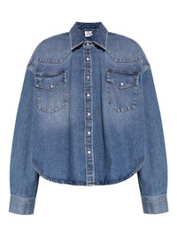 button-fastening denim shirt Highlights - Mid blue - Point collar - Chest pockets - Long sleeves - Curved hem - Press-stud fastening Made in Italy Composition Cotton 100% SIZE & FIT Measurement BUST 33.46 in(85 cm) WAIST 23.62 in(60 cm) Washing instructions Read Manufacturer Guidelines